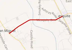 State Road 192 (NM 192) is a 2.367-mile-long (3.809 km), paved, two-lane state highway in Doña Ana County in the U.S. state of New Mexico. NM 192's western terminus is near San Miguel at the road's junction with NM 28. The road's eastern terminus is near Mesquite at the road's junction with NM 478. The road continues as NM 228 from the junction. NM 192 is also known as Mesquite Drive.