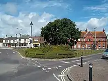 The traditional village centre of Milton was just south of the church. Up to the 1960s, moated earthworks were still visible next to the road known as Moat Lane. Excavations of these earthworks in 1956 revealed a series of peasant enclosures and hut remains dating from the 9th to the 12th century, but no evidence of a manorial farmstead was found.[5] The parish church of Milton is dedicated to Mary Magdalene and consists of a chancel with vestry, a nave and a western tower. The medieval church was pulled down and replaced around 1830, although the tower is of an earlier 17th century date.[3] In 1835, a Church of England National School was founded on an island of land near the village green,[6] where children were taught until just after World War I.[7] In 1881, the population of the entire Milton parish was only 1489 people, and Milton was still a small village.[8] The location of the village on the main Christchurch to Lymington road (now the A337) meant that there were two coaching inns - The Wheatsheaf and The George - the former of which is still operating.