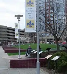 The New Rochelle Walk of Fame was installed in 2011 in Ruby Dee Park at Library Green, located in the downtown area of New Rochelle in Westchester County, New York.[1] The "walk" is a tribute to some of New Rochelle's most notable residents from throughout its 325-year history. It was created and funded by former resident Roderick Kennedy, Jr., working in partnership with the City of New Rochelle and the New Rochelle Business Improvement District.[2][3]