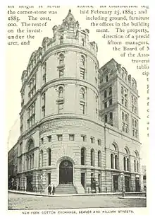 - "$3,000,000 New York Cotton Exchange Building to Be Built on Same Site as Present One; Structure Will Replace Downtown Landmark Erected Thirty-seven Years Ago--New Exchange Room Will Be at the Top of the Building". The New York Times. 1922-01-08. ISSN 0362-4331. Retrieved 2021-02-19.
