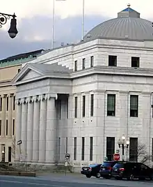 The New York Court of Appeals Building, officially referred to as Court of Appeals Hall, is located at the corner of Eagle and Pine streets in central Albany, New York, United States. It is a stone Greek Revival building built in 1842 from a design by Henry Rector. In 1971 it was listed on the National Register of Historic Places, one of seven buildings housing a state's highest court currently so recognized.[lower-alpha 1] Seven years later it was included as a contributing property when the Lafayette Park Historic District was listed on the Register.