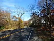 New York State Route 108 (NY 108) is a 1.72-mile-long (2.77 km) north–south state highway located on the Suffolk County side of the Suffolk–Nassau county line on Long Island, New York, in the United States. It is a spur route connecting NY 25A in Cold Spring Harbor to the Cold Spring Harbor station on the Long Island Rail Road's Port Jefferson Branch via Harbor Road. Harbor Road terminates at an intersection with Woodbury Road, on the Nassau County line, which carries County Route 11 to the east and unsigned County Route 12 to the west. NY 108, assigned in the early 1930s, is the shortest state highway on Long Island.