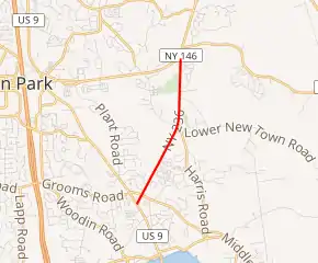 New York State Route 236 (NY 236) is a north–south state highway located within the town of Halfmoon in Saratoga County, New York, in the United States. The highway is little more than a connector linking U.S. Route 9 (US 9) to NY 146 while bypassing the intersection of the two routes to the south and east. The southern terminus of NY 236 is at an intersection with US 9 and the northern terminus is at a junction with NY 146.
