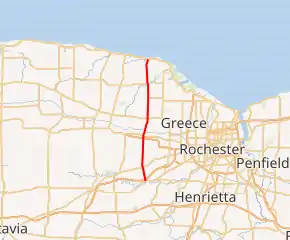 ![]() Map of the Rochester area with NY 259 highlighted in red | ||||