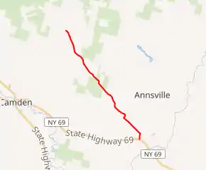 New York State Route 285 (NY 285) was a state highway in Oneida County, New York, in the United States. The southern terminus of the 6.87-mile (11.06 km) route was at an intersection with NY 69 west of the hamlet of Taberg in the town of Annsville. Its northern terminus was in the community of Thompson Corners, where it ended at a junction with County Route 67A (CR 67A) and CR 70. NY 285 was little more than a connector between NY 69 and Thompson Corners, as it did not pass through any other areas of interest.