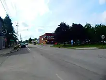 In South Dayton, NY 322 is known as Pine Street as it proceeds through the village. The amount of development along the route rises as it approaches the center of the village at Main Street. The route continues on, traveling by four blocks of homes and businesses before curving eastward and entering another area dominated by open fields. It exits the village limits shortly afterward. East of South Dayton, NY 322 is known as Dexter Corners Road as it heads through a rural area of the town of Dayton. NY 322 continues to the community of Dexter Corners, where it ends at an intersection with US 62.[4]