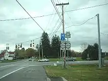 New York State Route 349 (NY 349) is an east–west state highway in Fulton County, New York, in the United States. The highway extends for 3.58 miles (5.76 km) across largely rural terrain from an intersection with NY 30A in the town of Johnstown to a junction with NY 30 in the town of Mayfield. The westernmost section of the route is known as East State Street Extension. NY 349 was assigned c. 1931 to the portion of its alignment between County Route 154 (CR 154; then NY 148) and NY 30. It was extended west to its present terminus in the mid-1950s after NY 148 was rerouted onto an arterial highway between Gloversville and Mayfield.