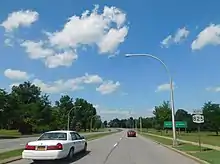 Construction on the four-lane roadway that became NY 825 began on November 20, 2001, with a groundbreaking ceremony. The southernmost 1 mile (1.6 km) of the $8.5 million highway was completed by the following October, at which time the roadway was signed as NY 825.[2] By 2004, the route was extended northward along two-lane surface streets to intersect NY 46 north of downtown Rome.[5] Long-term plans for the route called for the two-lane segments of NY 825 to be widened to four lanes.[2] The section of NY 825 from Bell Road to NY 46 was widened by February 2009, leaving just the 1-mile (1.6 km) of the route from the roundabout with Geiger and Ellsworth Roads northwest to Bell Road to be expanded.[6]
