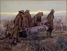 Although depictions of New Zealanders at war date back to the nineteenth century (with soldier-artists' such as Gustavus von Tempsky and Charles Heaphy), the New Zealand tradition of official military artists started with the First World War. Official war artists were appointed in the First World War in order to create a record of New Zealand's involvement in the conflict.[9] Lance Corporal Nugent Herman received the first official appointment as a New Zealand Army artist in April 1918.[10]