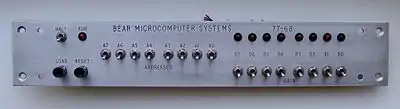 The 77-68 was programmed in its most basic form with toggle switches and LEDs. With the microprocessor's operation suspended in "HALT" mode, memory words could be accessed and their contents observed in binary. The word could then be modified directly using an additional 8 binary toggle switches to specify the data required. Once a complete program had been "toggled in" using this method, the "HALT" condition could be removed using another switch and the microprocessor would look for an address at which to start executing the program in the last two words of the address space.