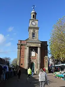 The building was commissioned to replace an earlier guildhall located just to the north of the current building.[2] The new guildhall, which was initially a rectangular red brick building with arches on the ground floor, was completed in November 1713.[1] It was altered by erecting a clock tower on the roof in 1830 and by bricking up the arches on the ground floor in 1861.[3]