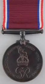 The Newfoundland Volunteer War Service Medal is a medal created to honour those from the Dominion of Newfoundland who served in British Forces outside of the Dominion during World War II. It was issued to those who did not receive a volunteer war service medal from another country, including Canada, and who had volunteered and served in units or organizations contributed by the Dominion to the allied war effort. The period of qualifying service was from September 3, 1939 through September 2, 1945,[3] but was not established until 1981. It was designed by Ian H. Stewart CM (who was at that time Senior Designer in Residence at Memorial University of Newfoundland in St. John's).