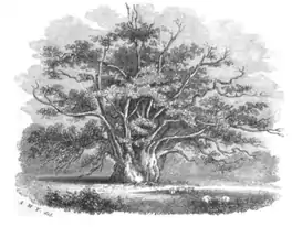 As one of the largest oaks in the country the tree was the subject of some fame. The antiquary John Timbs described it as "one of the most remarkable trees in the country" in 1839 and an engraving of the tree was included in P. J. Ducarel's De Wyrhale book of poetry in 1836.[6] By 1874 the tree was said to be "battered and decaying", though naturalist Edwin Lees thought it might live another 500 years.[7]