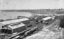Then plans to use the new site for the locomotive running shed were abandoned. The idea of moving the engine sheds to Newmarket from the Auckland Railway Station was mooted as early as 1912, and cited as one of the reasons why the Parnell Tunnel would have to be duplicated.[1] General Manager E. H. Hiley reported on 1 August 1914 that because its reclaimed land at Mechanics Bay would all be required for an extension of the station yard and other traffic sidings, the locomotive depot would be sited on reclaimed land in Hobson Bay and that the land that had been designated for this purpose at Newmarket would be used to extend the workshops. The extension of the Newmarket site was delayed by the war, but the land was eventually used for the construction of a carriage and wagon workshop, which freed space in some of the other workshops for locomotive maintenance. It was reported on 21 July 1916 that work on the new workshops was well underway, and the new buildings were ready for use towards the end of the year. They included a timber drying shed, a wood mill, a carriage and wagon shop, a lifting shop, a blacksmiths' shop, a tarpaulin shop and a trimming shop.