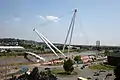 The main masts for the bridge were erected in the week commencing 1 May 2006 using the largest crane in the UK.[3] It was officially opened on 12 September 2006 (also the centenary of Newport Transporter Bridge) and is the ninth crossing of the Usk in the city.