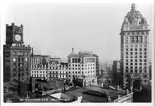 Newspaper Row in San Francisco referred to the five-point intersection of Market Street, Kearny Street, Third Street and Geary Street, where three of San Francisco's largest daily newspapers were headquartered, across the street from each other. By 1902, The San Francisco Call, The San Francisco Examiner and the San Francisco Chronicle were in buildings on corners, with the Chronicle in the Chronicle Building, the Call in the Spreckels Building and the Examiner in the Examiner building. The intersection became known as the "Times Square of the West".[1][2][3]