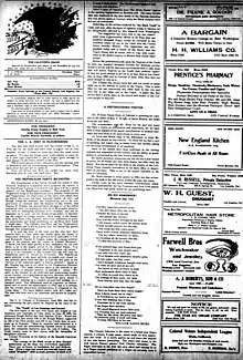 Lorang argues, noting William Cullen Bryant and John Greenleaf Whittier were known in their day as 'newspaper poets', that poetry was 'ubiquitous' in 19th-century American newspapers.[25] Douglas calls Edgar Guest 'probably the most widely circulated newspaper poet of all time'.[23] Another popular American poet who began his career in newspapers (after being rejected from more elevated venues such as Scribner's Magazine and The Atlantic Monthly) was James Whitcomb Riley.[26]