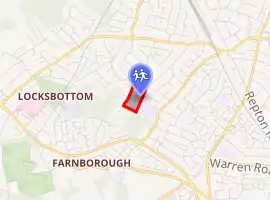 It is situated in the Crofton area of Orpington, not far from the A21 and next to Darrick Wood. Darrick Wood School and the Princess Royal University Hospital are the other side of Darrick Wood, to the west. The London Outer Orbital Path passes adjacent to the playing fields. It lies in the parish of St Paul's, Crofton.