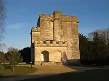 In the 19th century, the castle and the surrounding park were heavily landscaped to produce the current country house and gardens; only the renovated keep and the gatehouse survive intact, although a nearby mound marks one of the corner towers of the 14th-century castle.