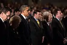 President Barack Obama delivered a reflection at the end of the service. Connecticut Governor Dan Malloy offered some thoughts prior to the President's remarks. The entire service was broadcast nationwide on CNN.[8]