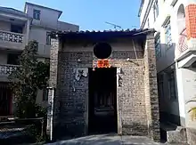 The entrance gate of the village was built in 1862 for defense purposes. A niche on the ground floor houses the Earth God statue and another honoring Kui Xing is located on the cockloft. The former is the guardian of the village whilst the latter is for worship of expecting official position and success in literature.[2] The entrance gate is listed as a Grade II historic building.[5]