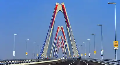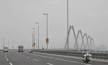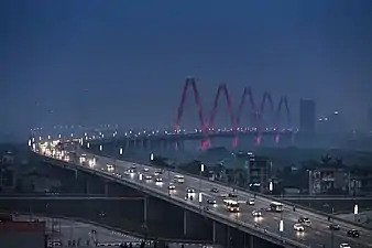 The Nhật Tân Bridge (or Vietnam–Japan Friendship Bridge) is a cable-stayed bridge crossing the Red River in Hanoi, inaugurated on January 4, 2015.[1] It forms part of a new six-lane highway linking Hanoi and Noi Bai International Airport. The project is funded by a Japan International Cooperation Agency ODA loan.[2]