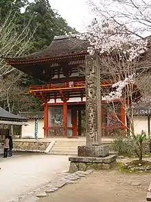 Niōmon (仁王門, lit. Niō gate) is the Japanese name of a Buddhist temple gate guarded by two wooden warriors called Niō (lit. Two Kings). The gate is called Heng Ha Er Jiang (哼哈二将) in China and Geumgangmun (금강문) in Korea. The two statues are inside the two posts of the gate itself, one at the left, one at the right. Structurally, it usually is either a rōmon or a nijūmon and can measure either 5x2 or 3x2 bays.[1] It can sometimes have just one story, as in the case of Asakusa's Kaminarimon.