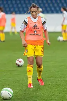 She played club football for Cardiff City, before moving to Reading in the FAWSL in July 2015.[5] She has also played numerous times at senior international level for Wales.[6]