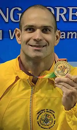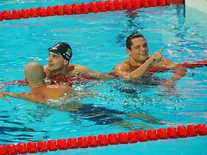 He was champion of the 2009 FINA Swimming World Cup at the Singapore step in November 2009, beating the Olympic Champion Roland Schoeman in the finals of both the 50-metre butterfly and the 50-metre freestyle.[28][29] At this World Cup, he broke the South American record of the 50-metre butterfly with a time of 22.17 seconds in Berlin and 22.16 seconds in Singapore and the South American record of the 50-metre freestyle with a time of 20.74 seconds in Berlin.[30]