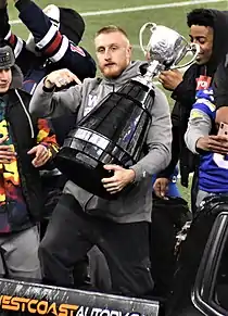 ![]() Hallett at Winnipeg's 2021 Grey Cup celebration. | |