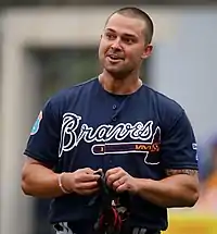 Nicholas Thompson Swisher[1] (born November 25, 1980) is an American former professional baseball outfielder and first baseman in Major League Baseball (MLB). He was a switch hitter who threw left-handed, and played for the Oakland Athletics, Chicago White Sox, New York Yankees, Cleveland Indians and Atlanta Braves. He won the 2009 World Series with the Yankees against the Philadelphia Phillies and was an All-Star in 2010. A power hitter with excellent plate discipline, Swisher hit at least 20 home runs in each of nine consecutive seasons from 2005 to 2013, and reached 75 bases on balls on seven occasions in that span.