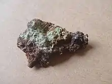 ![]() A crust of greenish nickelblödite on gossan; obtained from dealer at the Minerant (mineral show of the MKA) 2016 | |