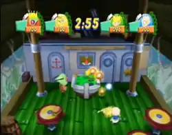 Nickelodeon Party Blast is a party game developed by English developer Data Design Interactive and published by Infogrames Interactive. Party Blast was released for Xbox in North America on October 30, 2002,[1] and later in PAL regions on December 6, 2002. The Windows version was released in one day later after the release of the Xbox version in North America. The GameCube version was released worldwide on December 6, 2002.[2] A PlayStation 2 version of the game was planned to be released, but it was cancelled for unknown reasons, though leftovers, such as a model of a DualShock 2 controller, can still be found in all versions of the game’s files.[3] The game features characters from Nicktoons, including SpongeBob SquarePants, Rugrats, The Adventures of Jimmy Neutron: Boy Genius, Invader Zim, Rocket Power, and The Wild Thornberrys, with CatDog as the hosts.