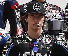 Nicolò Jarod Bulega (born 16 October 1999) is an Italian motorcycle racer, set to compete in the 2022 Supersport World Championship with Aruba.it Racing Ducati Team.[1] He has also been a competitor in the CEV Moto3 Championship in 2014 and 2015, becoming Moto3 Junior World Champion in 2015. Prior to competing in the CEV, Bulega won the Italian and European MiniGP 50 championships, and was Italian champion in the PreGP 125 and PreGP 250 classes.