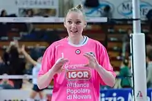She helped her team win their second NCAA Women's Volleyball Championship against top-seeded Stanford on December 15, 2007 at the ARCO Arena. She served championship point just a couple of hours before her 21st birthday.[14] She was named to the Final Four All-Tournament Team as she had 19 kills and two aces in the NCAA championship match. In the National Semifinal win over California, she served the final three points, including two consecutive aces, to win the match in the 3–0 win over the Bears.[15] She was also named the University Park Regional All-Tournament Team in her helping her team to 3–0 wins over Michigan and BYU. Throughout the NCAA tournament, she had at least two service aces in five of the six matches she played in, helping Penn State tie the NCAA record for services aces in an NCAA tournament, set by Long Beach State in 1998.[16]