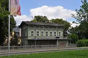 The entrance building of Niederselters station is listed.[4] It is of the type that was built on the Lahn Valley Railway. The building and platform canopies were extended around 1910. The goods shed that was added to the east of the station building has been demolished.