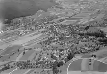 The municipality stretches along the Surb river through the Wehntal from the northern edge of the Lägern ridge to the new housing developments on the southern face of the Egg.