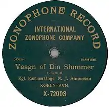 1903 Zonophone recording of Simonsen in Vaagn af din Slummer
