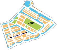 ![]() View of the Nieuwe Achtergracht. On the Roeterseiland (background) a new university building will be built over the canal. In front of it is bridge no. 260. | |||