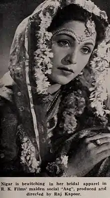 Nigar Sultana (21 June 1932 – 21 April 2000) was an Indian actress who worked in Hindi films. She appeared in Aag (1948), Patanga (1949), Sheesh Mahal (1950), Mirza Ghalib (1954), Yahudi (1958), Do Kaliyaan (1968), etc. but she is most notably remembered for playing the role of "Bahar begum" in the historical epic film Mughal-e-Azam (1960). She was the wife of filmmaker K. Asif. She died in May 2000, in Mumbai, India.