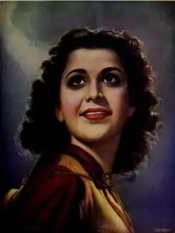 Her first big picture was Shikayat (1948), made in Poona; then came Bela (1947), a Ranjit production, and after that many more in which she played leading roles. She played the role of the court dancer Bahar, who envies Prince Salim's (Dilip Kumar) love for Anarkali (Madhubala) in the film Mughal-e-Azam (1960). The songs Teri mehfil mein and jab raat ho aisi matwali were picturised on her.[3] Her other films included Dara (1953) and Khyber.[2]