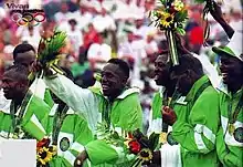 Nigeria celebrating their gold medal in football at the 1996 Olympics
