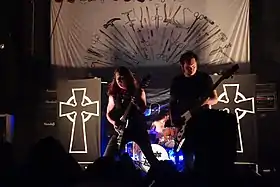 Night Demon is an American heavy metal band from Ventura, California. Performing as a power trio, the band is among several bands participating in the resurgence of traditional, old-school heavy metal in the 2010s.[1] Night Demon has released two studio albums on independent record labels[2] plus a live concert album and regularly performs at heavy metal festivals worldwide.