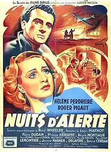 Night Warning (French title: Nuits d'alerte) is a 1946 French war drama film directed by Léon Mathot and starring Hélène Perdrière, Roger Pigaut and Pierre Dudan.[1] The film's sets were designed by the art director Roland Quignon. A waitress helps an escaped French resistance fighter to evade capture and make it to Britain.