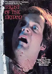 Night of the Demon is a 1980[lower-alpha 2] American horror film directed by James C. Wasson, written by Jim L. Ball and Mike Williams, and starring Michael Cutt, Joy Allen, Robert Collings, Jodi Lazarus, Richard Fields, Michael Lang, and Melanie Graham. The film centers on an anthropologist who, along with a group of his pupils, embarks on an expedition to prove the existence of Bigfoot in a rural region of Northern California, only to be stalked and systematically slaughtered by the creature.