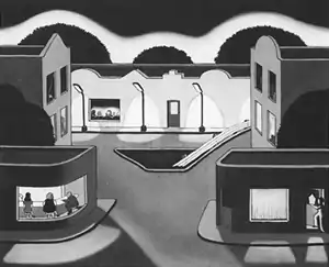 Hopper was an avid moviegoer and critics have noted the resemblance of his paintings to film stills. Nighthawks and works such as Night Shadows (1921) anticipate the look of film noir, whose development Hopper may have influenced.[26][27]