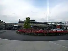 The station consists of an island and a side platform serving three tracks. The station building houses a waiting room, shops, a JR ticket window (with a Midori no Madoguchi facility) and a JR Travel Centre (Warp Plaza). Car parking and rental are available.[2][5][6][7] The island platform is reached by means of a bridge equipped with elevators for barrier-free access.[8]