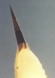 In the original Nike-X plans, Sprint was the primary weapon and thus was considered to be an extremely high-priority development. To speed development, a sub-scale version of Sprint known as Squirt[109] was tested from Launch Complex 37 at White Sands, the former Nike Ajax/Hercules test area.[110] A total of five Squirts were fired between 6 November 1964 and 1965. The first Sprint Propulsion Test Vehicle (PTV) was launched from another area at the same complex on 17 November 1965, only 25 months after the final design was signed off. Sprint testing pre-dated construction of an MSR, and the missiles were initially guided by Zeus TTR and MTR radars.[111] Testing continued under Safeguard, with a total of 42 test flights at White Sands and another 34 at Kwajalein.[108]
