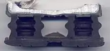 Nike Shox is a shoe feature first released by Nike in 2000 that is incorporated in several of their flagship sneakers. The shoe design includes a support system feature, which is an arrangement of small hollow columns in the midsole supporting the shoe's heel, which are made primarily with polyurethane. There are different formations of the shox technology, but most models include four circular columns in a square formation to provide cushioning. Later variations of shox models added one or two additional shox, 25 mm high, though they may vary in elevation; as well as triangular and rectangular shox that Nike claims provide better stability. Some shoes have midsoles made entirely of Shox, like the TL and VC series.