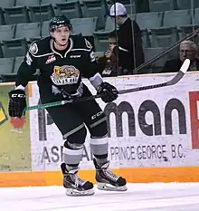 He joined the Blades in 2013 where he led all rookies in goals (28), assists (50), and points (78) during the 2013–14 WHL season.[3] His outstanding play was rewarded when he was invited to play the 2014 CHL Top Prospects Game.[4]